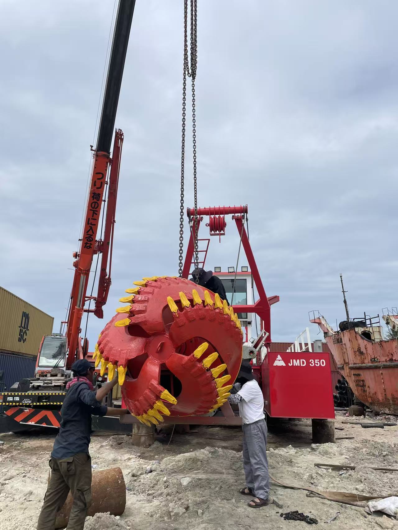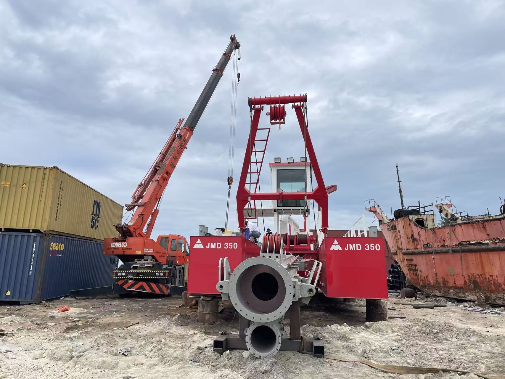 หลังจากที่รถขุดดูดคัตเตอร์ JMD350 มาถึงไซต์งานของโครงการ บริษัทได้ส่งวิศวกรบริการหลังการขายที่มีประสบการณ์สองคนและนักแปลเต็มเวลาหนึ่งคนทันทีเพื่อจัดตั้งทีมบริการพิเศษเพื่อไปที่ไซต์งานสำหรับงานประกอบ ด้วยทักษะวิชาชีพที่เชี่ยวชาญ แผนการประกอบที่ครบถ้วน และการประสานงานที่มีประสิทธิภาพ ทีมงานจึงปฏิบัติตามข้อกำหนดการปฏิบัติงานด้านความปลอดภัยอย่างเคร่งครัด และส่งเสริมการประกอบและการทดสอบการใช้งานตลอดทั้งกระบวนการอย่างต่อเนื่อง ใช้เวลาเพียงสองวันในการประกอบเรือขุดทั้งหมดให้เสร็จสิ้น โหมดการทำงานที่มีประสิทธิภาพ ปลอดภัย และสะดวกสบายได้รับการยกย่องอย่างสูงและเป็นที่ยอมรับจากลูกค้า